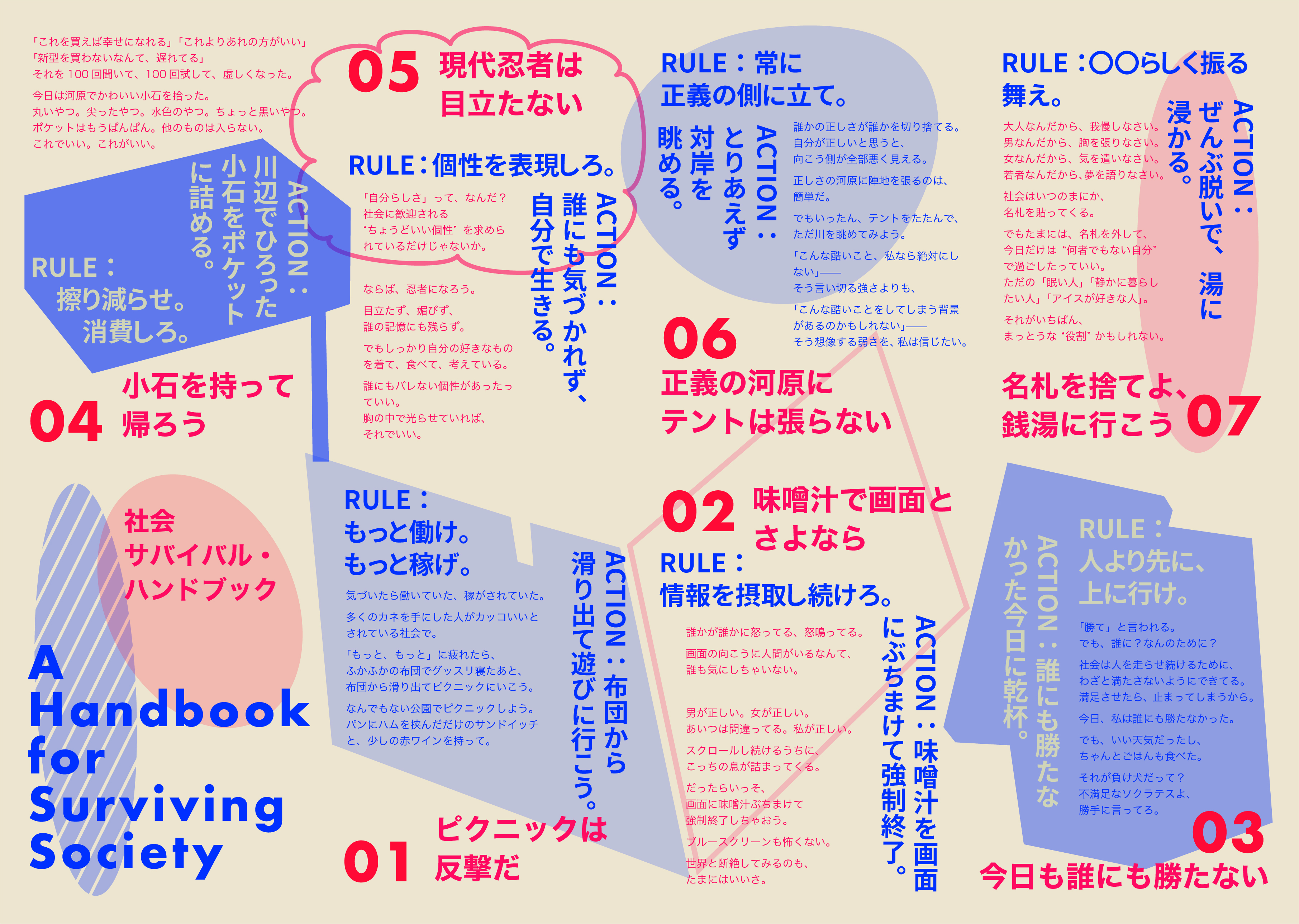 生きづらいこの社会を生き延びるためのハンドブック。この社会のルールやしがらみ、「正しく」「自分らしく」生きねばならないという圧力から、自分で自分を攻撃してしまう日に、なんとかこの位置に立ち続けるためのアイデアをまとめた。